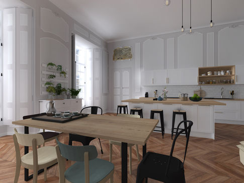 Réalisation des visuels 3D et mise en ambiance du projet pour le concours d'une rénovation d'un hangar à bateau en bar restaurant. Projet lauréat.