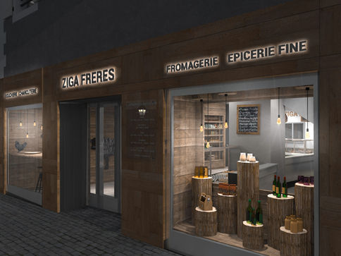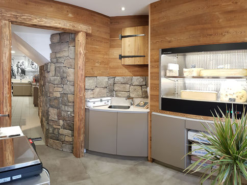 et de la vitrine d'une boucherie, fromagerie et épicerie à Embrun.